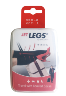 Schlagen Sie dem "Economy Class Syndrom" ein Schnippchen und tragen Sie JET LEGS Travel Socks! 15- 20 mm Hg Druck bei der Fessel.